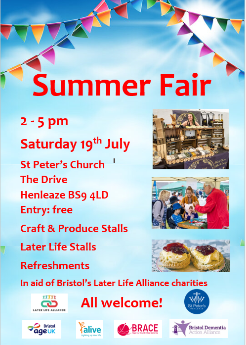 On Saturday 19th July 2pm - 5pm, we’ll be at the Summer Fair at St Peter’s Church, Henleaze!